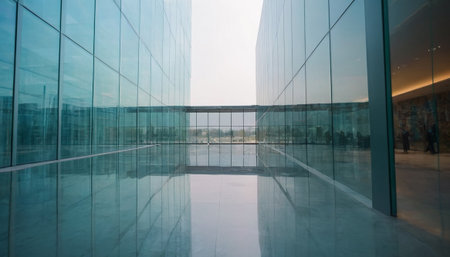 Modern architecture of a glass corridor in an office building, perspective view