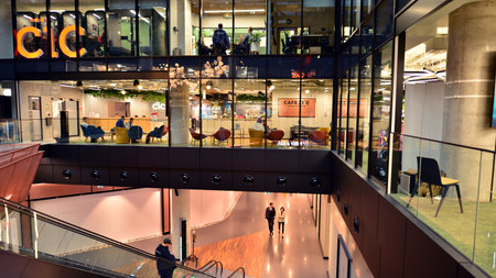 Warsaw, Poland. 1 December 2022. The interior of the Cambridge Innovation Centre. CIC Warsaw is located at Varso Place, a commercial complex well know Varso Tower , the highest sky