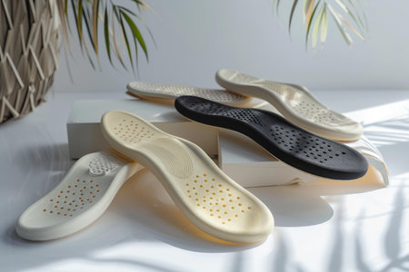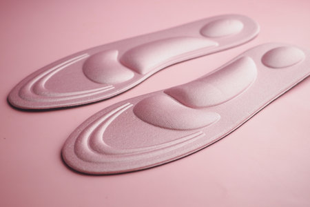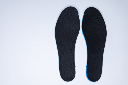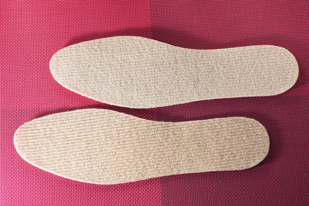 Shoe inserts on a white background. Comfortable orthopedic shoe accessories. Photo taken with flash.