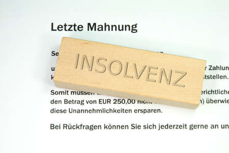 Insolvent symbolic photo insolvency bankrupt depts money finance and economic crisis with stamp economy business concept