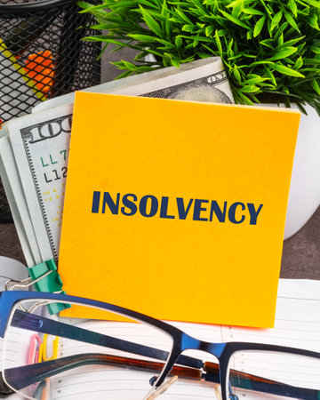 INSOLVENT text concept Business. INSOLVENT word written on a yellow sticker on the background of money