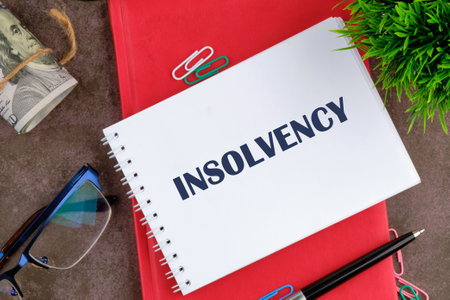 Insolvent symbolic photo insolvency bankrupt depts money finance and economic crisis with stamp economy business concept