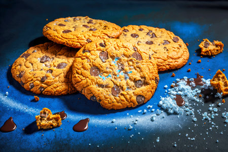 Indulge in these freshly baked chocolate chip cookies, perfectly golden and loaded with melted chocolate. Ideal for dessert lovers and baking fans alike.