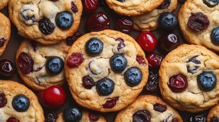 A scrumptious collection of homemade cookies featuring vibrant blueberries and tart cranberries, perfect for dessert lovers and gatherings alike.