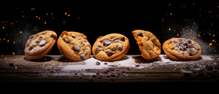Homemade chocolate chip cookies on rustic table generated by artificial intelligence