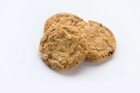 Raisin cookies or biscuit with crumbs flavor. Isolated on white background.
