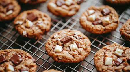 Delicious Freshly Baked Chocolate Chip Cookies Cooling on a Wire Rack