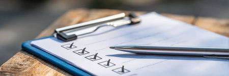 A detailed checklist on a clipboard featuring multiple check marks, symbolizing task management and effective workflow strategies in a professional office setting.