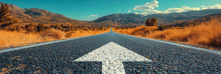 An asphalt road with an arrow painted on it symbolizes growth, development and the path to success.