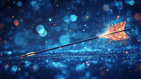 Dynamic and Vibrant Arrow in Motion, Sparkling in Blue and Gold Colors, Symbolizing Focus and Goals