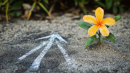 An artistic representation of an arrow on the ground symbolizing direction and hope, beautifully illuminated by the warm glow of a setting sun.