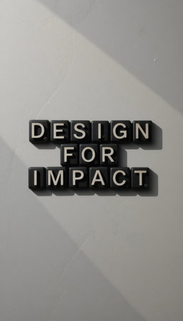 A striking arrangement of black letters spelling DESIGN FOR IMPACT on a neutral background, perfect for showcasing creativity and motivation in design.