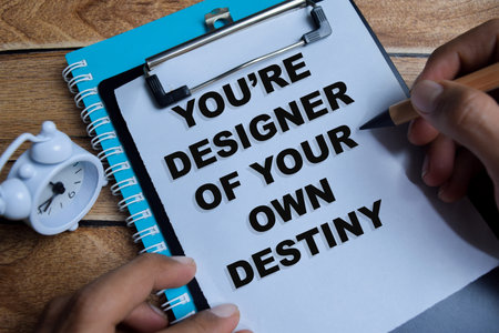 Concept of you're designer of your own destiny write on clipboard isolated on Wooden Table.