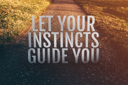 Let your instincts guide you motivational quote on footpath along the park, selective focus