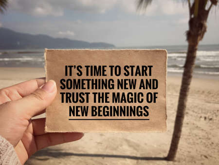 Motivational and inspirational quotes - ‘It's time to start something new and trust the magic of new beginnings’ written on a paper. With vintage styled background.