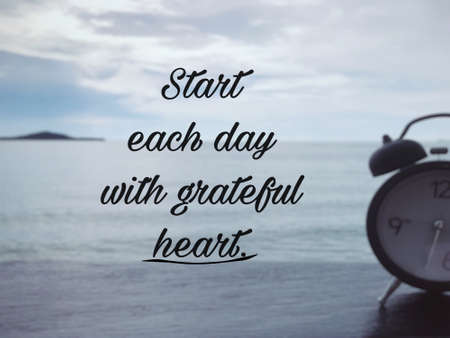 Motivational and inspirational wording - Start Each Day With Grateful Heart. Blurred styled background.