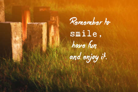 Remember to smile, have fun and enjoy it. with blur landscape praire background