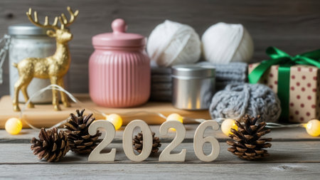 A flat lay arrangement of simple Scandinavian-style Christmas ornaments AI generated illustration