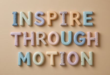Bright and playful colorful letters spell out Inspire Through Motion, perfect for creative projects, educational materials, or motivational themes.