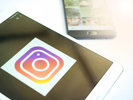 Chiang Mai, THAILAND-Feb 16th 2018: Samsung Tablet on white Background, show screen of instragram application for social media issue