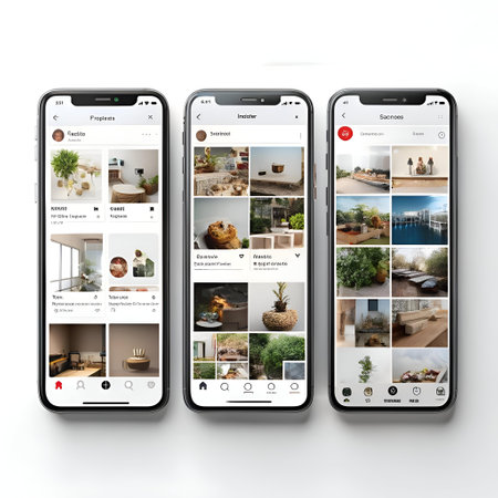 A modern smartphone displays a grid of diverse. stylish home decor images perfect for your design projects. This image embodies trendy aesthetics and adds a touch of sophistication to any project.
