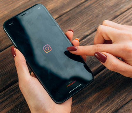 Gelendzhik, Russia, 20 February 2020: A woman launches the Instagram application on an iPhone 11.