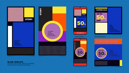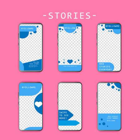 Story frame template social media business vector illustration in blue color. Trendy abstract photo frame blank stories template