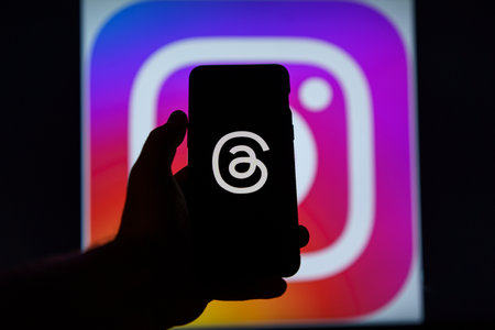 Smartphone screen with newly installed Threads by Instagram social media app on table top