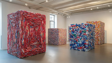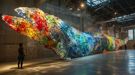 /imagine prompt: An environmental artist creating large-scale installations that highlight the importance of recycling and conservation, made from repurposed materials --ar 16:9 --stylize 300 Job ID: beda013f-588b-44ae-a6ff-1fe17263d6bb