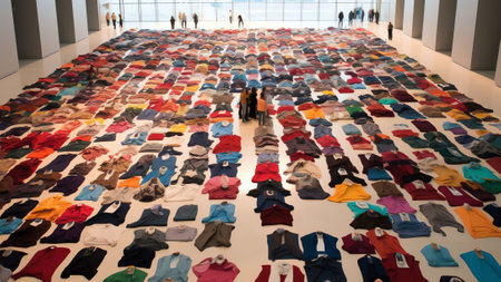 Huge stack of clothes in the shopping center. Toned.