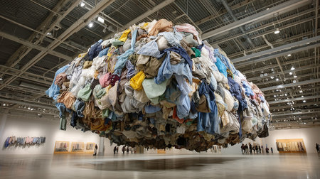 large-scale textile artwork draped in a gallery, created with generative ai
