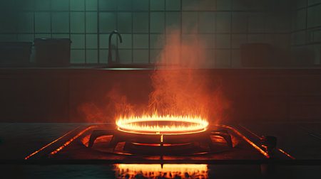 The mesmerizing blue flames from a gas stove enhance the cooking ambiance and captivate