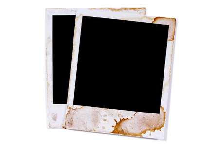 Two old vintage stained style blank photo print frames isolated on white background