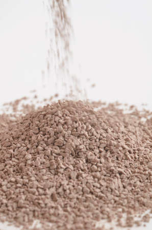 This image shows a close-up view of a mound of fine, brown powder. The texture appears smooth and uniform, with a slightly granular consistency. The powder is heaped on a flat surface, possibly for industrial or culinary use.