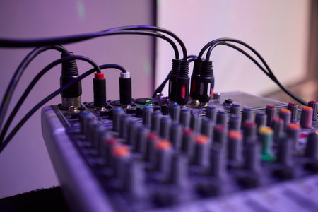audio mixer in the studio for mixing audio from different musical instruments and voice.