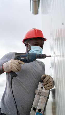 Close up of Electrician worker during installation process of new wall lamp in the house during repairs