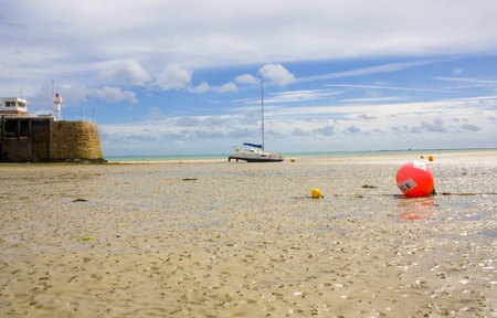 old boat on beach in Brittany in low tide