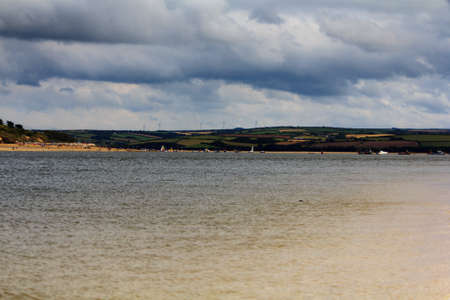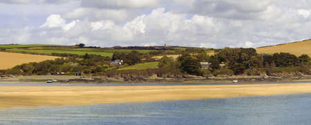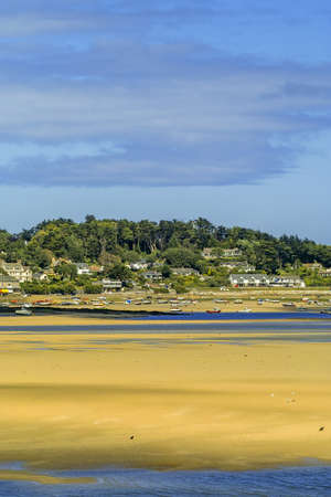Panorama of the Camel estuary at low tide with the touristic village Rock in Cornwall. View from Padstow on the opposite site of the estuary.