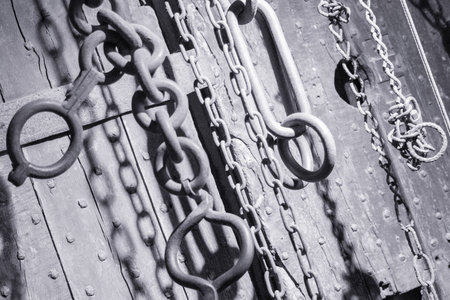 Detailed black and white image blur incredible feet chained.