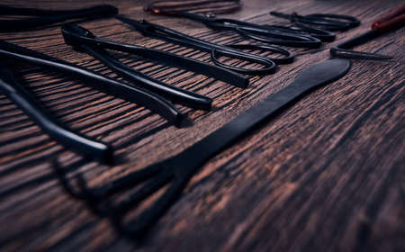close up on old tools for torture