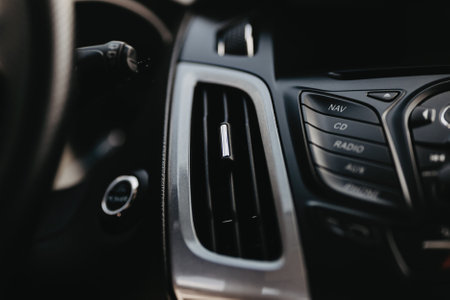 Car air conditioner, interior of a new modern car