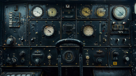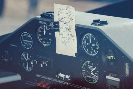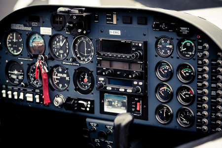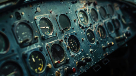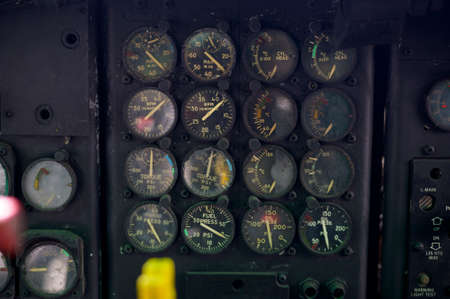 Close up of old vintage airplane cockpit Flight Deck control panel