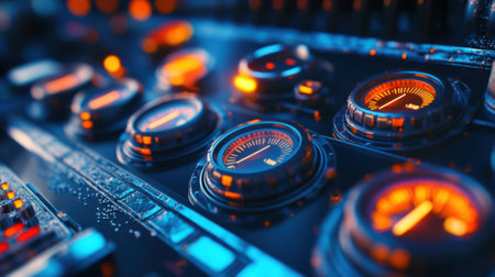 Futuristic control panel showing performance indicators with glowing lights