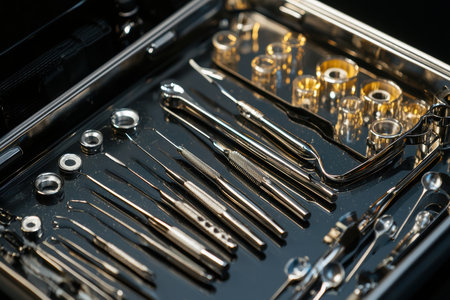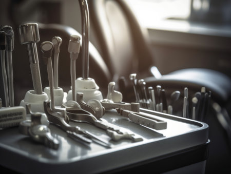 Closeup of a modern dentist tools burnishers doctor checks : Generative AI