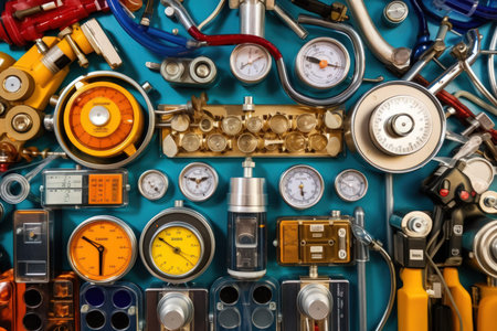 detail photo of scuba equipement, several hoses and instruments