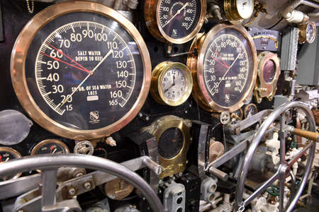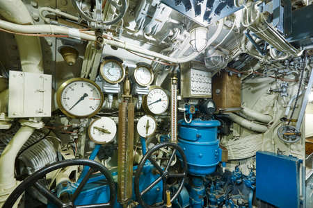 close-up of submarine control panel with buttons and switches, created with generative ai