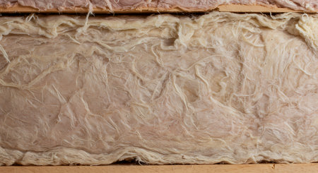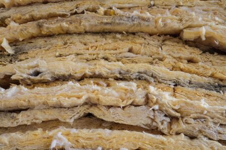Mineral fiberglass is laid out in several layers. Fiberglass background.