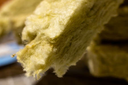 Mineral stone basalt wool. Modern insulation of buildings. Creative vintage background. Plate material