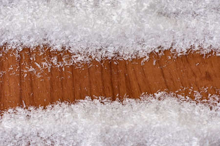 Thermal insulation material, rock wool. Thermal roof insulation layer. Mineral wool or mineral fiber, mineral cotton, mineral fibre, glass wool, MMMF, MMVF. Fiber thermal insulation close-up.