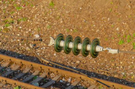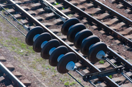 Close up of a large isolator on a power line for electric passenger trains. High quality photo